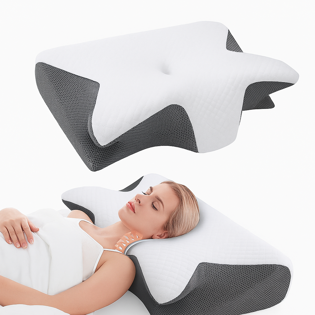 Kudden har en butterfly hollow design som stödjer nacken, axlarna och ryggraden i korrekt linje, vilket fördelar trycket jämnt och lindrar spänningar och obehag.